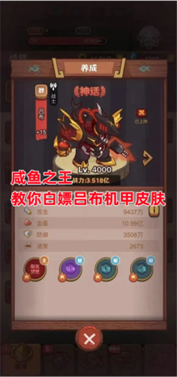咸鱼之王这款游戏中,大多数玩家都选择吕布作为自己的主力输出,因此吕布的服役是最长的,也是玩家最喜欢使用的角色,最近版本的更新,推出了机甲系列的皮肤,吕布就有其中一款机甲皮肤,这个皮肤超级帅气,很多玩家