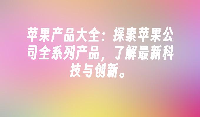 苹果产品大全,包括iPhone、iPad、MacBook等系列产品,涵盖了苹果公司的所有创新科技。了解苹果产品的最新特点、功能和规格,以及购买指南和使用技巧。探索苹果世界,尽享高品质的数字体验。