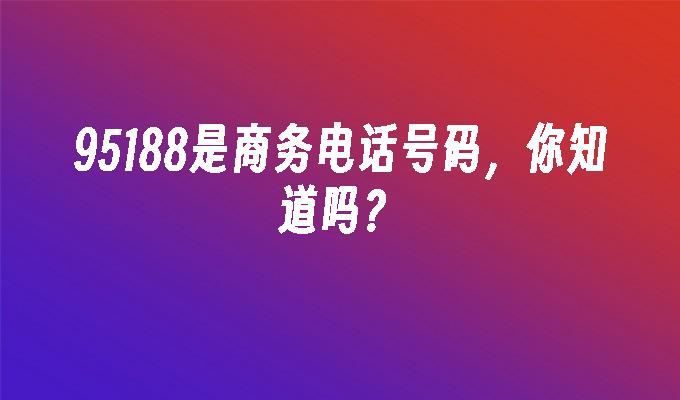 95188是什么电话?是中国移动的一个专属号码,可以用来接收短信、彩信、语音等服务。95188号码可以提供更多的服务,比如查询余额、账单、流量、套餐等,让您更加便捷的使用中国移动的服务。