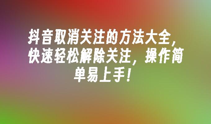 想要了解如何在抖音上取消关注?不用担心,我们为您提供了简单易懂的步骤。只需阅读在此,您将轻松学会取消关注的方法。立即点击了解更多!