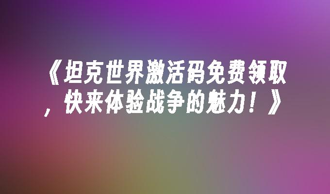 获取坦克世界激活码,畅玩最热门的多人在线战争游戏。充满策略与团队合作的战斗,让你体验真实的战争场景。立即领取激活码,开启你的战车之旅!