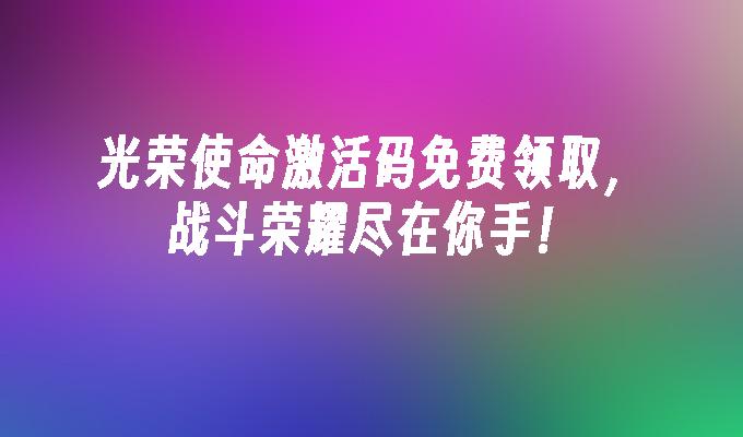 光荣使命激活码免费领取,快来获取最新的光荣使命激活码!光荣使命是一款热门的射击游戏,现在免费领取激活码,让你畅享游戏乐趣。立即点击领取,体验最刺激的战斗!