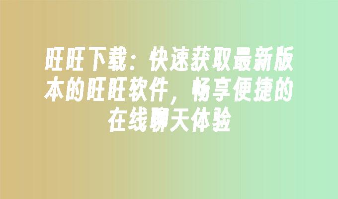 旺旺下载是一款功能强大的软件下载平台,提供各类热门软件的免费下载服务。无需注册,下载速度快,安全可靠。旺旺下载拥有海量软件资源,涵盖了各个领域的应用软件,满足用户的不同需求。快来旺旺下载,畅享便捷的软件下载体验!