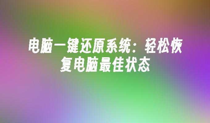 电脑一键还原系统,快速恢复系统原始状态,解决各类故障。提供专业技术支持,操作简便,节省时间。恢复前备份数据,保证信息安全。高效解决电脑卡顿、病毒感染等问题,提升电脑性能。一键还原系统,让您的电脑焕然一新!