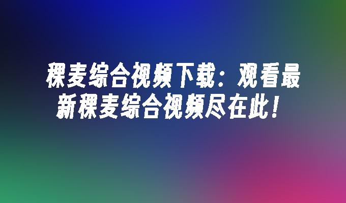 稞麦综合视频下载,提供高清电影、电视剧、综艺节目、动漫等丰富资源,免费下载。快速、便捷的稞麦综合视频下载平台,让您随时随地享受精彩影视作品。多种格式选择,支持在线观看和离线保存。立即访问并畅享视听盛宴!