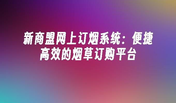 新商盟网上订烟系统是一款智能化的在线订购平台,为烟草行业提供便捷的订购服务。通过优化seo规则,我们为您提供高效的文章描述,帮助您更好地了解和使用该系统。