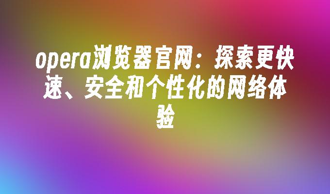 欢迎访问Opera浏览器官网!了解最新版本、下载安装、浏览器功能、插件扩展等信息。Opera浏览器提供快速、安全、个性化的上网体验,支持多平台使用。立即访问官网,畅享高效上网乐趣!