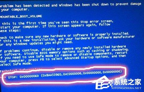 最近有用户反映,电脑在开机过程中突然出现了蓝屏的情况,代码是“STOP:0x000000ED”,导致电脑无法正常开机,再...