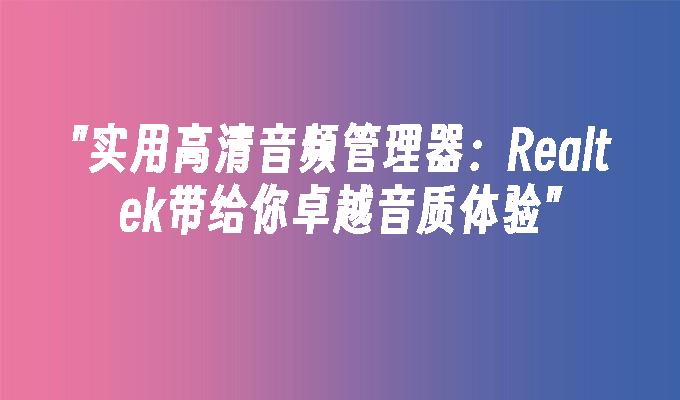 了解如何使用Realtek高清晰音频管理器来优化您的音频体验。通过该管理器,您可以轻松调整音频设置,包括均衡器、音效和环绕声效果。提升您的音频质量,享受更清晰、更逼真的声音。