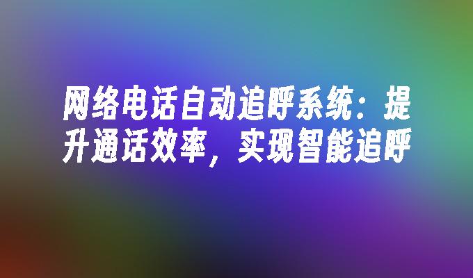 网络电话自动追呼系统是一种高效的通信工具,能够实现自动追呼功能。它通过智能算法,根据用户需求自动拨打电话,提高沟通效率。该系统具有便捷、快速、智能的特点,为企业提供了更好的客户服务体验。