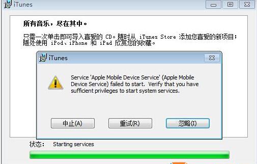 在Win7系统下安装itunes,有不少用户都遇到了安装时错误的情况,提示信息为:Service apple mobile device 中文含义:服务Apple Mobile Device启动失败