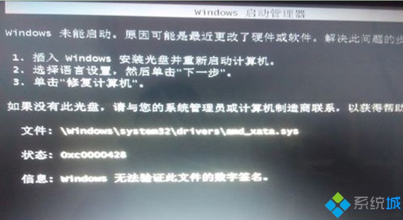 win7系统用户在开机时,屏幕显示0xcoooo428错误代码的问题,怎么办?该如何解决这个问题,可能是最近更改了硬件或软件引起的