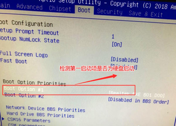 需要检测是否在BIOS里关闭了硬盘,如果是关闭状态将其打开设置即可。开机之后进入BIOS界面,点击键盘上的回车,在Boot option 1中回车就可以看到硬盘,选择硬盘为第一启动项,最后按F10保存重启即可。