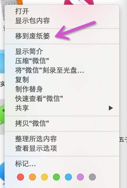 首先,打开桌面左下角的Finder,打开Finder后,在左边的栏目中选择应用程序,里面就是你的Mac当前所安装的所有软件,选中你要卸载的软件,右键,移到废纸篓。