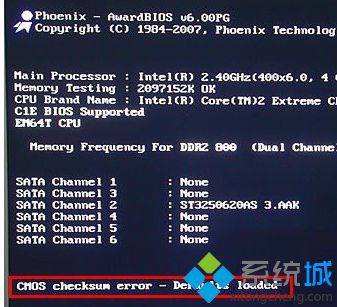 Win7系统中有用户在开机自检的时候黑屏,弹出 "CMOSchecksumerror-Defaultsloaded "的提示,需要按F1或是DEL键重新设置才能正常,出现这样情况怎么办?下面让小编来给大家分析一下故障原因及解决方法吧。