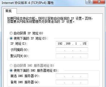 IP地址需要和网关在同一个IP段,子网掩码一般填写255.255.255.0,默认网关在安装有路由器的网络下,一般就是主路由器的IP地址了,如果电脑可以上网,运行,CMD,ipconfig,填写192.168.1.1就可以了。