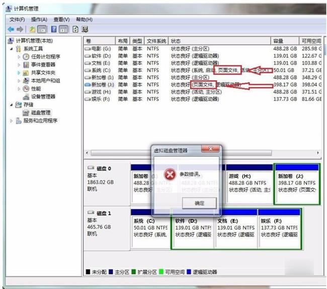 右键计算机单击属性,单击高级系统设置,打开系统属性,单击高级,点击性能的设置,单击高级,点击虚拟内存下的更改,选择提示参数错误的盘,按顺序点击无分页文件,设置,确定之后电脑会提示重启计算机生效,点击重启,重启后就可以修改盘符了。