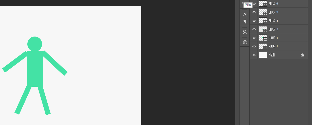首先,在PS中绘制一个人物图案,注意人物的各部分是在不同的图层中的,在键盘上,同时按下Ctrl+Alt+Shift+E四个键,可以看到,所有的图像都合并在同一个图层1中,而图层都没有合并。