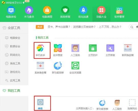 以360安全卫士为例,从桌面上打开或是右下角图标打开,打开操作主界面后,点击右下角的更多按钮,工具中可以看到360手机助手,再点击下面的编辑按钮,图标出现一个叉号,再点击叉号,提示是否要删除360手机助手,继续确定。