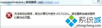 win7系统开启搜狗提示“无法启动此程序,因为计算机丢失atl71.dll。尝试重新安装该程序以解决此问题。”Atl71.dll文件是Windows系统中的重要文件,主要应用于GDI图形设备接口图形界面等相关模块,如果丢失atl71.dll