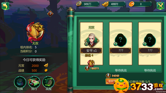 新版铁血江湖跨服大战全面上线,玩家在将可以自由挑战其他服务器的高手,下面随我来看看铁血江湖跨服战玩法吧。 跨服1V1,匹配实力相当的对手竞技对战 巅峰对决规则: 1、 每天挑战五次,可购买更多挑战次数。 2、 挑战胜利后排名对调,无论胜败都获得战绩。 3、 巅峰对决分为新秀组、先锋组、勇者组、精英组、战将组、统领组、无双组。 4、 排