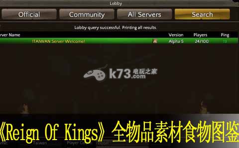 国王的统治Reign Of Kings游戏中也需要通过获得不同的资源让自己能够生存下来,这些资源中包括了最为基础的材料,生存下来必须之一的食物以及其它等物品。基础塬料名称图片採集来源树枝 Stick 木头 Wood石头 Stone陶土 Clay油 Oil 亚麻 Flax乾草 Hay铁 Iron水 Water泥土 Dirt花 Flowers 食物 免烹调野莓B
