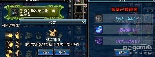 任务途径: 做完主线第一步会接到一个重复任务,收集6个新异界的道具就可以得到一枚异次元碎片,经测试,在无任务助手的情况下概率很低,但是有助手一天3个不是问题。 赋予失败: 装备赋予失败后会获得异次元碎片。170 225异次元碎片可以再克隆特大叔这里交换远古3套装戒指和鞋子。强化后的远古3赋予失败获得的异次元碎片数量会上升(加7会碎出10个左右)。所以土
