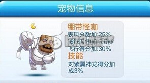 天天酷跑于8月14更新,新版游戏中增添了许多新的宠物。比如月亮级宠物、长江8号等等。让我们一起看看1、月亮级宠物:绷带怪咖点评:作为专配宠物,绷带怪咖的属性和紫翼神龙还是很有默契的,历史最高的25%得分加成外加3%的专属加成很好的让表现分暴涨,磁铁时间对于玩家来说或许作用不大,重点就是有30%的飞行得分,配合5倍踩怪简直准备带来全新奇迹,有神龙的玩家