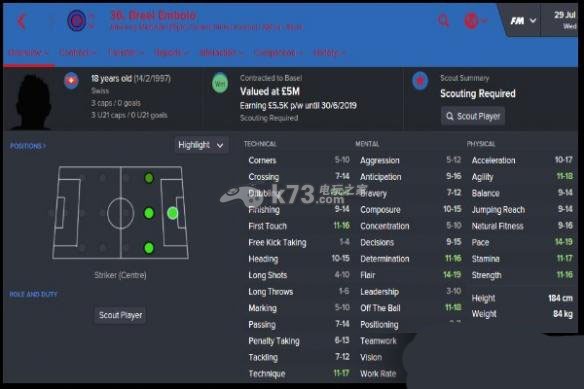 第16位:Breel Embolo年龄:18岁俱乐部:巴塞尔位置:前锋 中场核心身价:500万英镑Breel Embolo是游戏中最犀利的前锋之一,因此玩家应该尽早签下这位妖人。2016-17赛季,玩家只需1100万英镑便能顺利签下这位球员,他将会用实质性表现回馈球队。出众的盘带技术、天赋、耐力属性让他能在比赛中创造出绝佳机会,并收获进球和助攻。2017-1