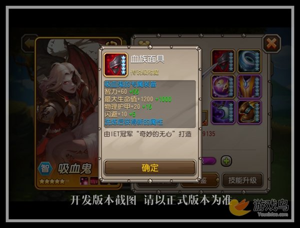 刀塔传奇世界BOSS同款英雄——吸血鬼即将开启觉醒!他充满了神秘优雅的贵族气息,源源不断变出的蝙蝠和强大的吸血能力令敌人颤抖。吸血鬼开启觉醒后,拥有了全新的卡牌形象,并且更加强力,下面我们来看看吧!觉醒装备吸血鬼的觉醒装备是“血族面具”,带上它,吸血鬼在智力、生命值、物理护甲和闪避上都有大幅提升,加上他本身不断