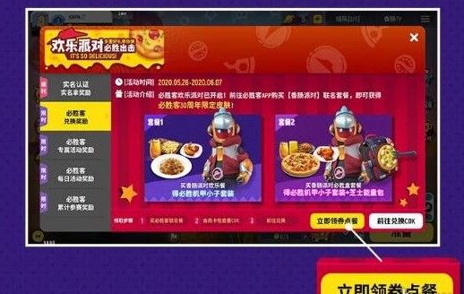 香肠派对必胜客兑换码领取成功之后在哪里使用?这个兑换码的使用方法还有很多人不知道,本次联动带来了很多活动,兑换码也能通过购买套餐领取,下面将为小伙伴们带来兑换码的领取流程,包括使用兑换码的方法也会有介绍。 香肠派对必胜客CDK码领取及兑换方法 一、领取肠岛专享联名套餐优惠券在游戏内“欢乐派对,必胜出击”活动界面,点击“立即领券点餐”领取玩
