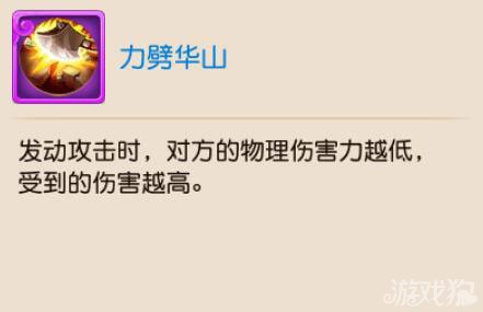 梦幻西游手游力劈华山技能怎么样及分析,梦幻西游手游11月11日维护后在全服增加了一个80级新稀有宠物巨灵神将,巨灵神将有一个新技能叫力劈华山,这个技能有什么用,力劈华山的伤害公式是怎样的,下面为你解读。力劈华山技能解读力劈华山介绍:发动攻击时。对方的物理伤害力越低,受到的伤害越高。力劈华山伤害计算公式:附加物理攻击力=(己方物理伤害力-目标物