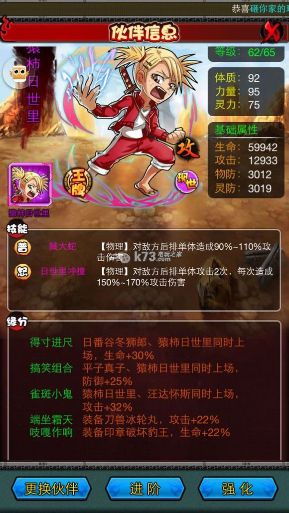 死神手游我换个几个号,在第一次必得5星抽时大多数都出现了日世里,觉着不少玩家可能和我一样,就把日世里为核心的阵容培养起来给大家看看怎么样。 日世里强力单攻输出稳定恋次 三血羁绊 无力吐槽没防比较纠结 还好有格挡 勉强算不错的前排小白 看脸的单控 不错的输出小汪 奶......八千流 暂时打酱油的以后换虚白虚白 强力刀 三攻羁绊 需要限时友哈巴赫小伙伴还有两