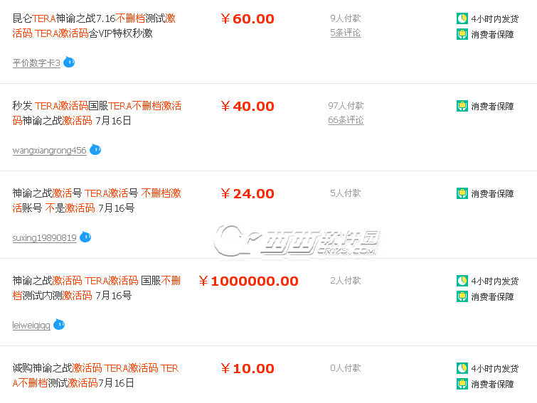 tera国服是由混论游戏公司代理的韩国开发的一款非常火爆的3D角色扮演动作网游,据爆料和目前的关注度来说跟腾讯的剑灵相比也毫不逊色,tera国服本月16日将正式开启不删档测试,还没有搞到激活码的小盆友那是快要急疯了。我就给大家说说在淘宝商城怎么购买tera国服激活码。购买激活码可不是一件简单的事,有的家伙说了,不就是打点钱换个激活码么,我告诉你,如果你
