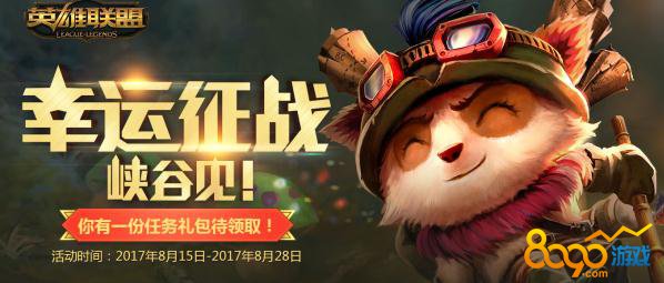 幸运征战峡谷见活动现在都是一个月就上线一次的,这次也是不例外的在15号已经上线了,之前参加过幸运征战峡谷见活动的玩家想必就不是很陌生了吧。 8090雪泡泡原创作品,禁止转载,谢谢 8月的幸运征战峡谷见活动的时间是在,8月15日-8月28日,玩家们登录到英雄联盟官网在活动版块,就能找到这个活动了哦。 在版本更新之后,幸运玩家在这个活动的页面中先要