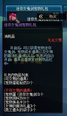 相信大家都非常期待dnf迷你女鬼剑礼包,下面就来给大家介绍一下。 8月31日晚,DNF体验服更新了第四季第三章重生·复仇女神,伴随着新职业女鬼剑士登场的还有一系列的活动和商城物品更新。 新增迷你女鬼剑礼包,内含物品如图,售价19800点券。 在更新后商城购物送礼盒。 你是不是非常迫切拥有呢!?以上就是DNF迷你女鬼剑礼包什么时候上架 迷