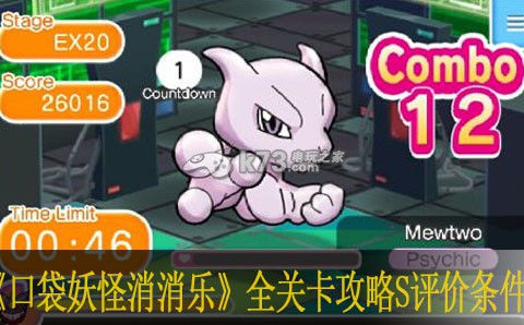 口袋妖怪消消乐之前从日版到现在的美版,希望后面可以有中文版的,毕竟 这样一款不错的消除游戏希望可以有中文才能更尽情的玩耍,以下为游戏中各关卡的资料。1.EX关评价:跟剩余时间做比较。S:剩余时间>关卡限制时间的1 2;A:关卡限制时间的1 2>剩余时间>关卡秒数的1 6;B:关卡秒数的1 6>剩余时间>1秒。例如第 1关限制时间1:00 要拿S是剩30秒以上