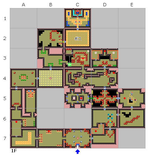时空之章地下迷宫Lv.1魂の墓(一)攻略暗示①阻挡道路的建材之中,特定建材可以按方向键推动,开通前进道路。②装备使用本地下迷宫中入手的力量手镯「パワーブレスレット(Power Bracelet)」,平时无法应付的壶与岩石全都可以搬起来扔到一边了。(二)迷宫地图(转自日本网站nJOY)(三)入手物品(地图上闪烁的红点)A5力量手镯「パワーブレスレット(Powe