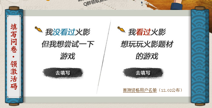 火影忍者ol将在12.5全球首测,距离现在只剩5天了,我想激活码一定是大家非常想要获得的。那么来给大家火影忍者ol首测激活码怎么获得。 1.进入官方网站,只要将符文拖进位于页面中间的的封印阵势,即可进行封印解锁,解锁之后出来了两个忍者,貌似是小樱和佐助,旁边有个竞彩火影ol动态赢手办激活码的活动,点击立即参与即可进入火影忍者官方微博。进行预测之后