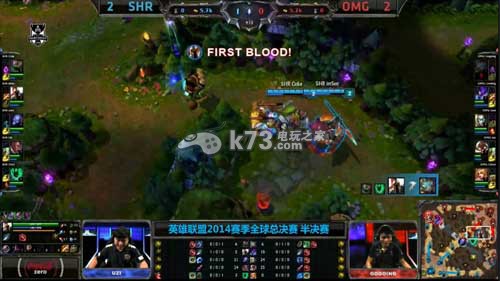 LOL英雄联盟半决赛已经完毕了。皇族击败了OMG晋级总决赛。我给大家带来的就是LOL英雄联盟S4皇族击败OMG晋级总决赛。皇族在蓝色方,OMG在紫色方。OMG选择换线,双方打野互换蓝BUFF。2分钟,皇族潘森树精来到中路,逼出了OMG发条的闪现。4分钟,皇族多人入侵OMG野区,锤石钩中OMG兰博,潘森树精跟上输出,潘森收掉兰博的人头拿下一血!皇族上一塔被破。