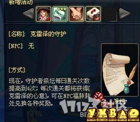 DNF体验服更新之后增加了守护者祭坛可刷的次数上限,掉落了克雷泽的心意道具可以在福胖胖处兑换奖励,下面是详细的兑换奖励介绍。dnf克雷泽的心意怎么得?每次通关守护者祭坛可以获得克雷泽的心意,一定数量的克雷泽的心意可以在福胖胖处兑换各种道具奖励。克雷泽的心意有什么用:dnf克雷泽的心意能兑换哪些道具:上面即是dnf克雷泽的心意获得方法(dnf克雷泽的心意能