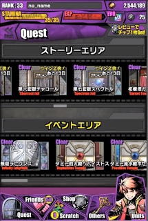 迷宫分为Story Area 及 Event Area ,玩家可以选择自己想攻略的地方进行游戏。官方早于TGS时已公有会与STEINS GATE进行合作活动,相信这些Crossover关卡将出现在Event Area中予玩家选择。关卡右上方会显示部分如:Coins两倍,余下时间等资讯。 关卡资料: 关卡内分有5个小Quest,玩家选择后,上