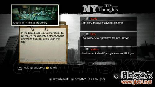 第十一章BOSS战,P1阶段:与变异的Connors合力打开2扇门,分别破坏BOSS2个能量槽。P2阶段,BOSS升空,不断释放激光(每放一次说一句话),只管躲避,话说完会出现硬直,与Connors合力破坏激光炮,往返3次,过关!注意会有机器人骚扰,优先解决释放激光时不断跳跃躲避,被打中也没关系自动剧情,破坏剩余的2个炮台上面的文章就是神奇蜘蛛侠(第十一章图