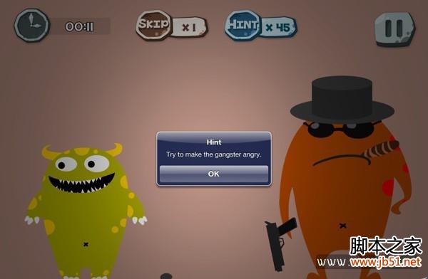 100种蠢蠢的死法第一关:很简单,地上有个石头,拿石头砸黑帮老大,砸三次黑帮老大就会毙了你。100种蠢蠢的死法第二关:拼命摇晃手机或平板,让房子地震,让你被砸死。100种蠢蠢的死法第三关:大吼几声,让汽车的喇叭声被盖住,你就会被车撞死。100种蠢蠢的死法第四关:很简单,按住下水道口,让洗澡水淹没整个屏幕,你被淹死了。100种蠢蠢的死法第五关:红绿灯杆