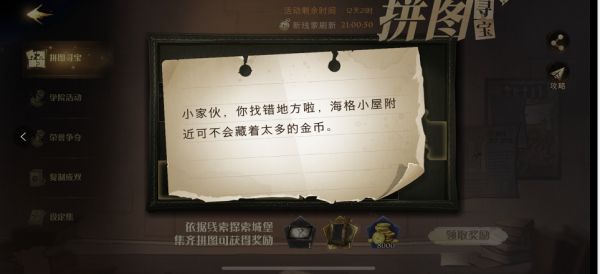 哈利波特魔法觉醒“小家伙,你找错地方啦”是的一个线索提示,这个提示可以帮助玩家快速的找到11.4拼图碎片,游戏鸟我接下来会把“小家伙,你找错地方啦,海格小屋附近可不会藏着太多的金币”线索的位置分享在下面,让玩家可以快速的找到这个拼图碎片。 哈利波特魔法觉醒小家伙你找错地方啦拼图寻宝线索位置 线索:小家伙,你找错地方啦,海格小屋附近可不会藏着太多的