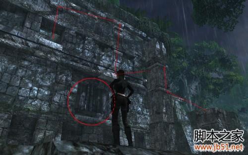 第四关 南墨西哥在这一关里摩托车千万不要舍弃,否则游戏到某些位置就会无法进行了摩托车一路飞驰,在见到一座建筑的时候停下,按照箭头所示拉下房间内的吊环机关,开启右边红圈标识的时限门,进入得到必要道具兽头出来继续行驶,来到如图位置,右边的建筑是需要安装道具才能转动的转 盘机关,因为暂时没有道具所以不要管他,但是请千万记住这里没有来过,然后