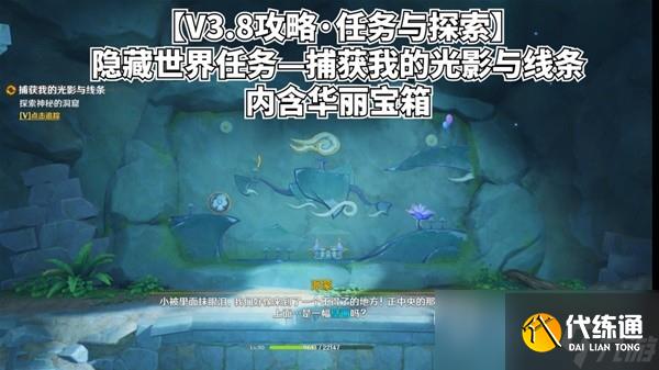 在原神游戏中,朋友们会遇到原神隐藏世界任务捕获我的光影与线条方法难点问题,而且这个问题解决方法操作有点难,但不用怕,我这一次给大家详细的解决这个问题。任务简述:我们需要进入地图南方的特殊洞窟之中,解开隐藏在壁画之中的神奇秘密,探索处于地下的神秘宝藏。任务奖励:40原石,摩拉4W,紫薯以及矿石。任务时长:25分钟注意事项:本期任务需要在完成开