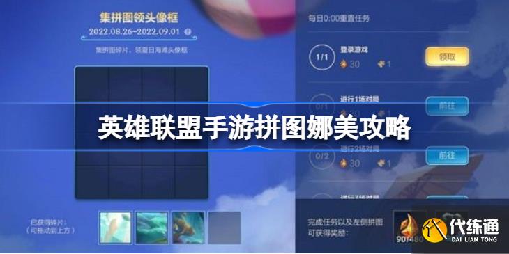 英雄联盟手游最近开放了一个拼图活动,需要玩家将娜美的拼图组装好,英雄联盟手游拼图娜美怎么拼 1、娜美完整拼图如图所示,完成拼图共需要16个碎片,通过每日登录和对局可以获取4个获取碎片,最快四天可以完成。 2、活动时间:2022年8月26日—9月1日,收集拼图碎片,领取夏日海滩头像框及大量龙魂