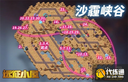 图文详解攻略: 1.到1的位置,消灭怪物阵营,获取沿路奖励 2.到2的位置,操纵红色列车控制杆,执行“发车”指令 3.到3的位置,操纵蓝色列车控制杆,执行“发车”指令 4.到4的位置,操纵红色列车控制杆,执行“重置”指令 5.
