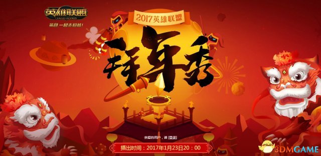 活动时间:1月18日-1月23日21:30活动详情:1月23日晚8点,在2017英雄联盟拜年秀播出时,我们将揭晓8张“获奖英雄卡片”,赶紧点击获取英雄卡片,有惊喜按钮,获取你的5张英雄卡片,有机会获得英雄手办,永久皮肤奖励!活动规则介绍:1、1月23日,在2017英雄联盟拜年秀播出时,我们将揭晓8张英雄卡片,如果您的5张英雄卡片与拜年